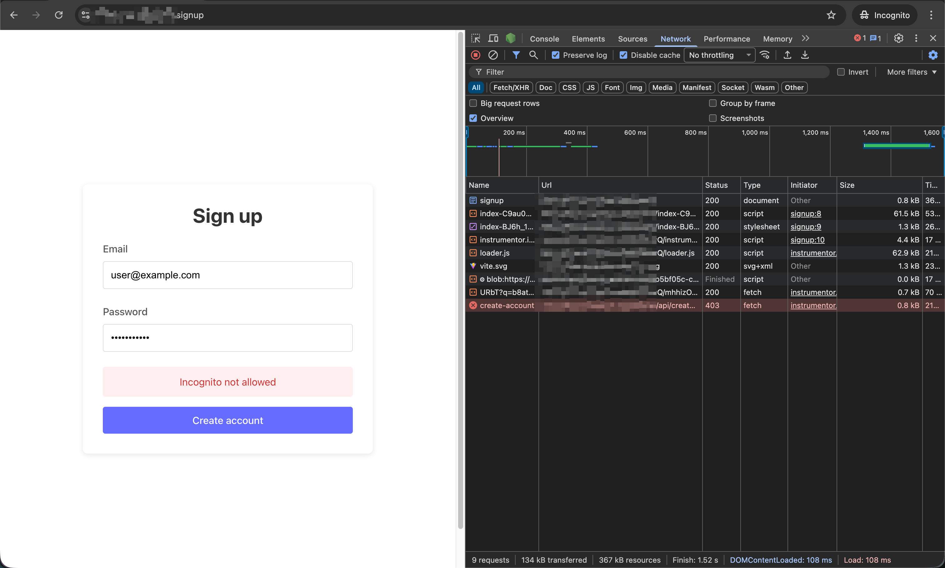 For example, you might want to prevent browsers in incognito mode from creating accounts in your application:
